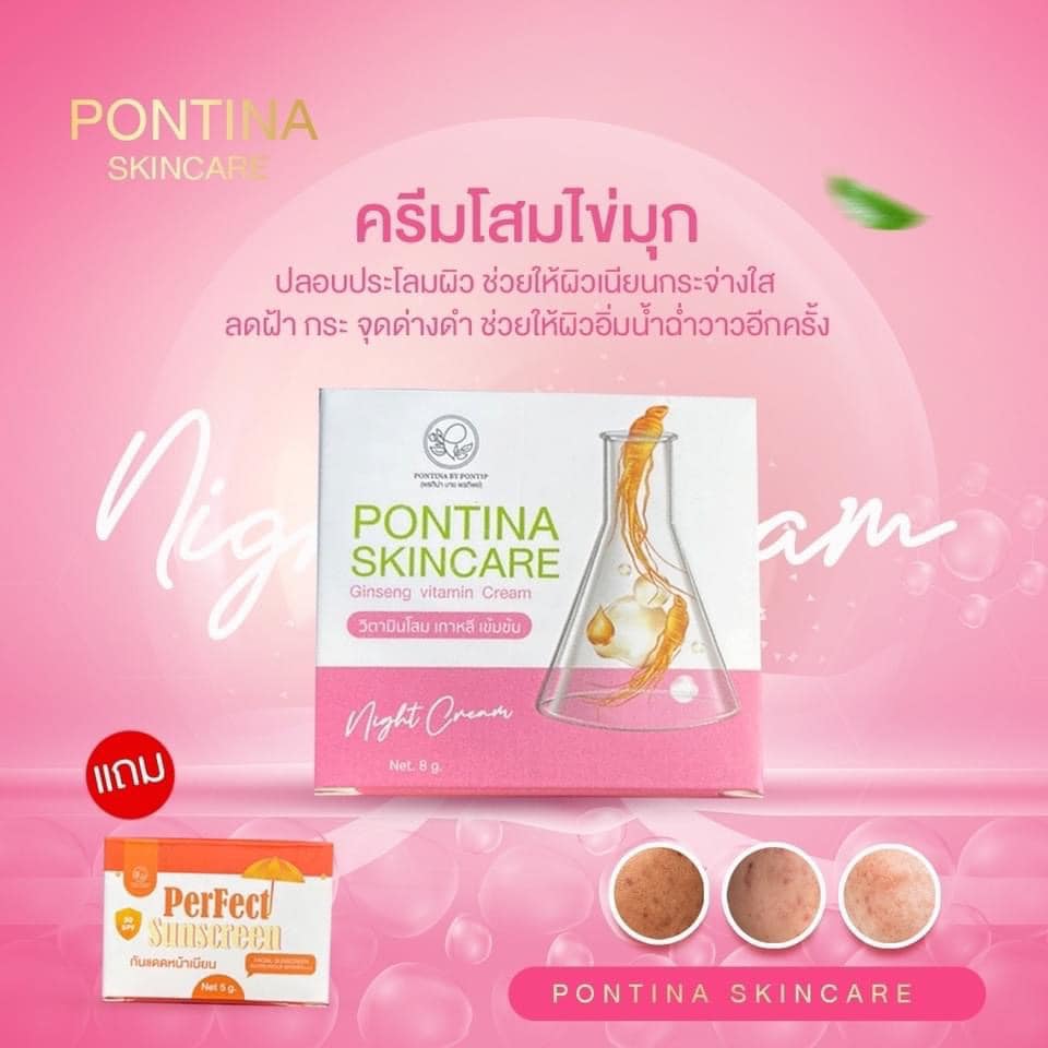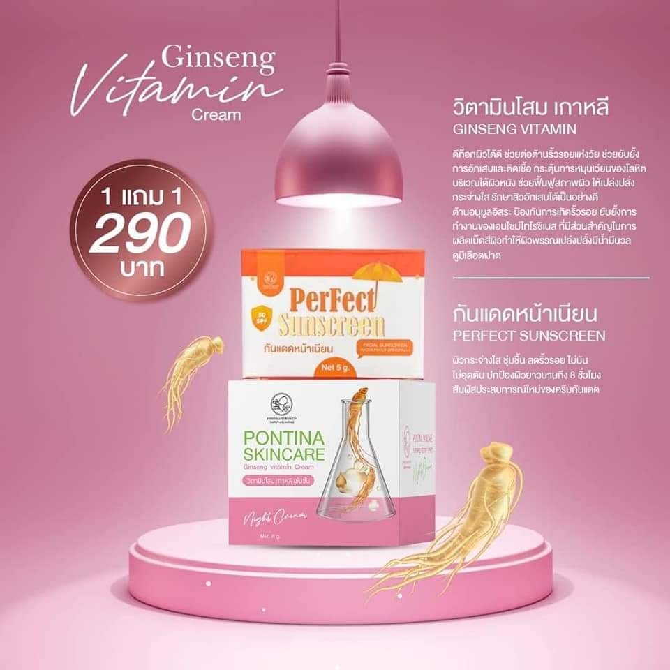 Pontina พรทิน่าครีมโสมไข่มุกเกาหลี วิตามินโสมไข่มุกเกาหลีตัวช่วยดูแลผิวหน้า ที่มาพร้อมกันกันแดดหน้าเนียน SPF50 เนื้อเบสบางเบา ซึมไว ไม่เหนียวเหนอะหนะ พร้อมทั้งบำรุง กันน้ำกันเหงื่อ